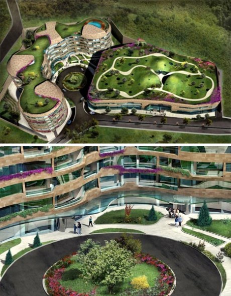 这个名为“One & Ortakoy”的多功能建筑群位于土耳其的伊斯坦布尔。它拥有弯曲的有机形态以及被绿草和鲜花覆盖的起伏屋顶,与所在的美丽山区融为一体。这个建筑群位于奥尔塔科伊附近地区,现正在建造之中。它由两座建筑构成,正面使用天然石头打造。其中一座是住宅建筑,另一座则是商用建筑。